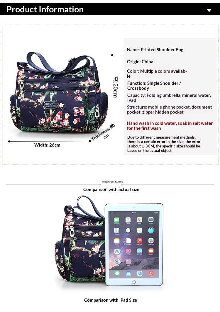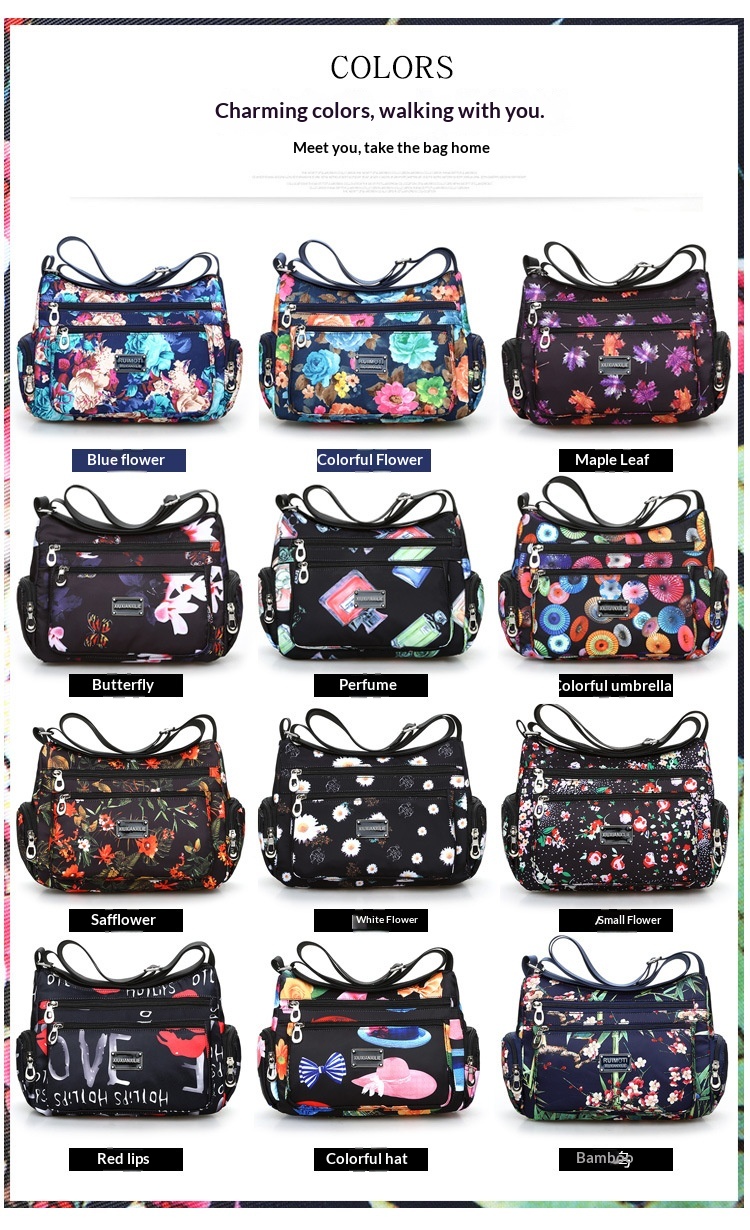 Fashionable Printed Womens Bag Trendy Landscape And Floral Fabric Pattern