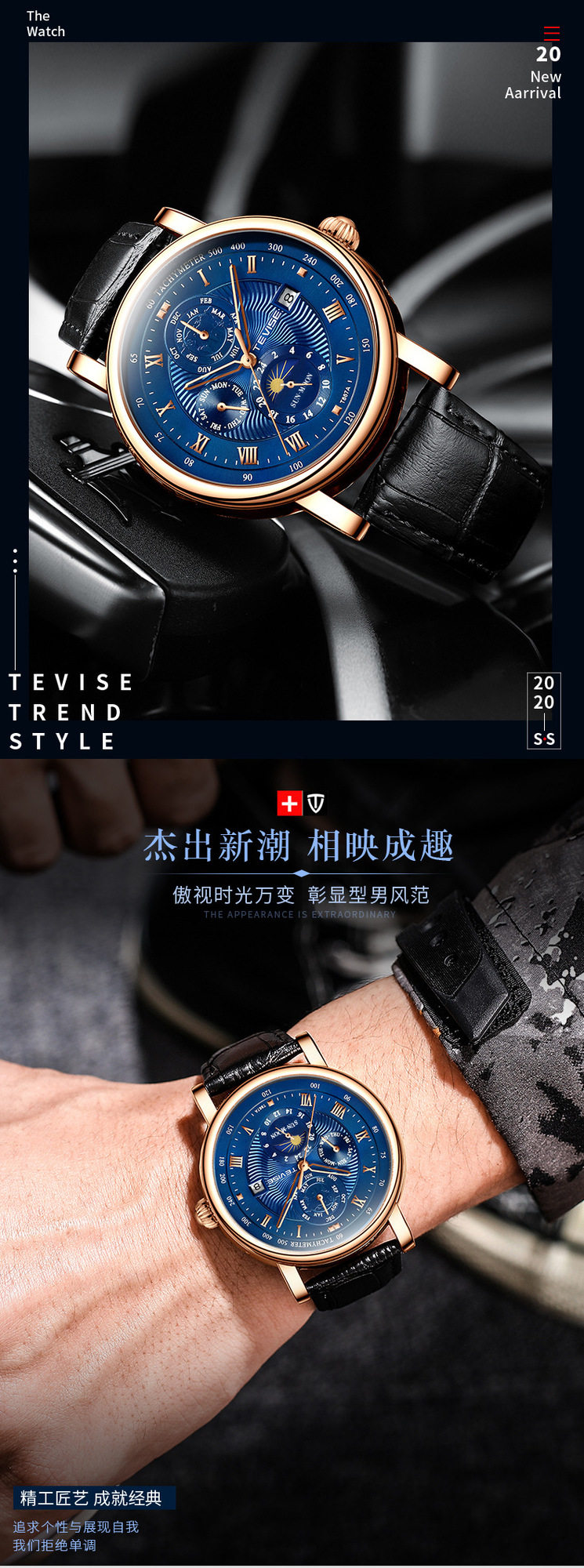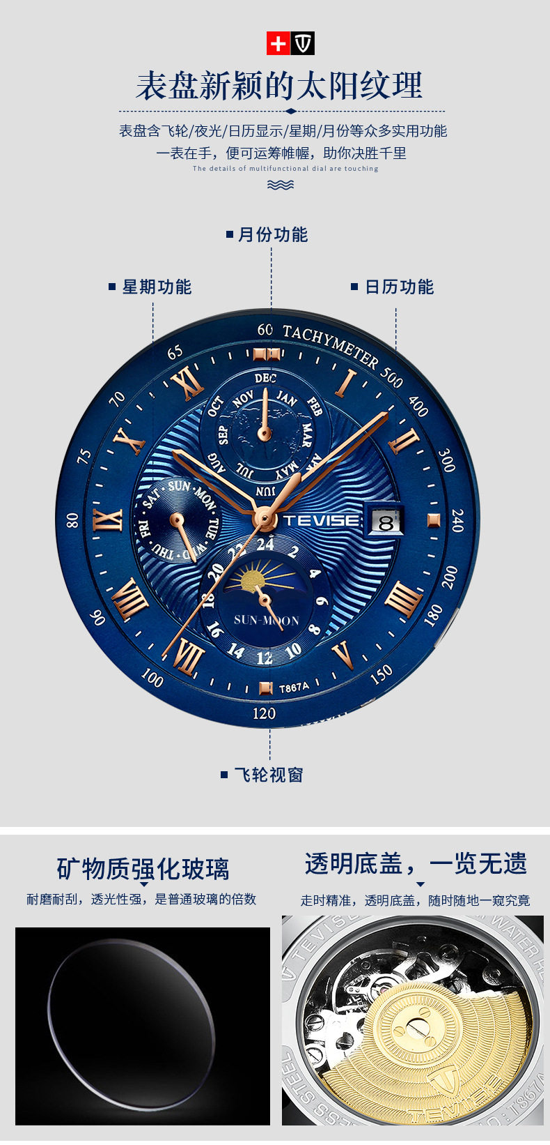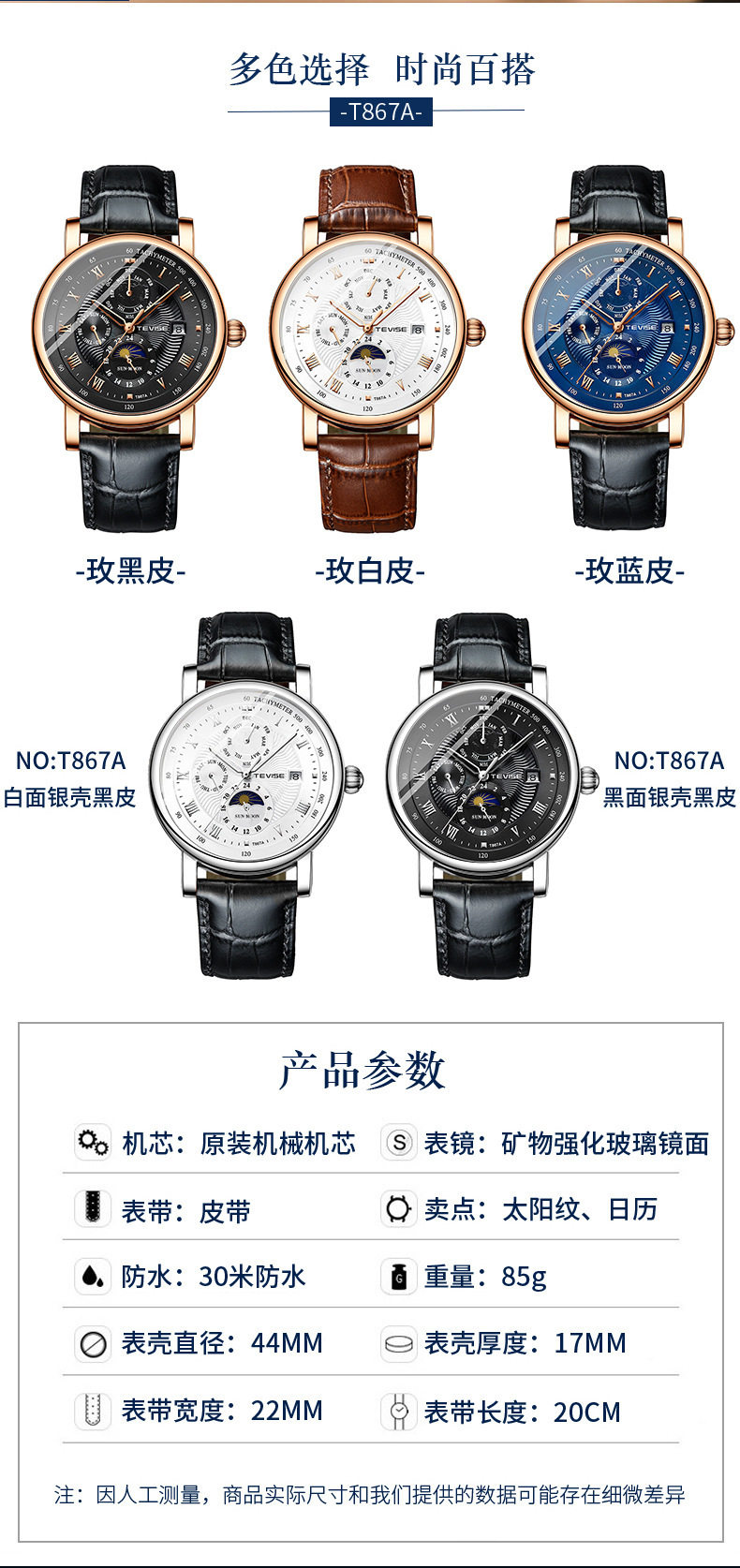Product information: Shape: Round Case Material: Alloy Style: Business Dial Diameter: 44mm Dial Thickness: 17mm