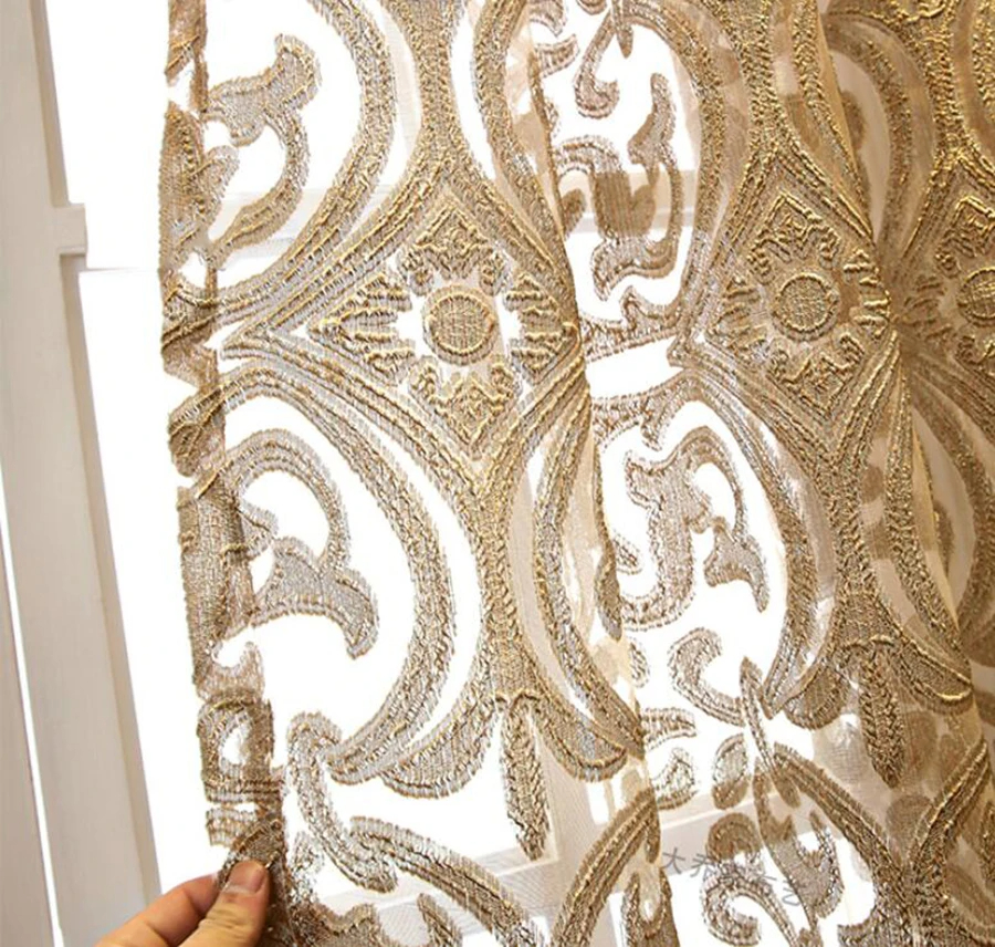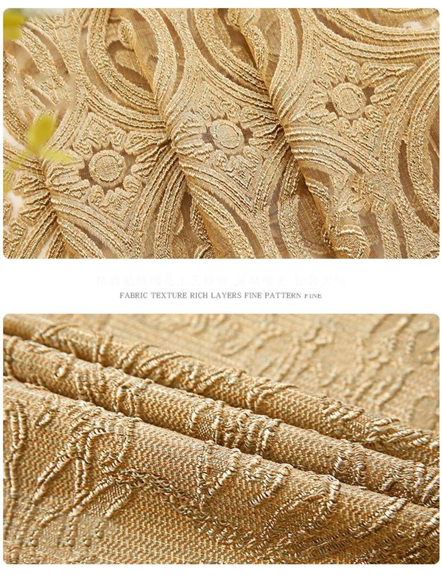 High-end Luxury European Embroidery Gauze Curtain Living Room Bedroom Balcony Court Golden Shading